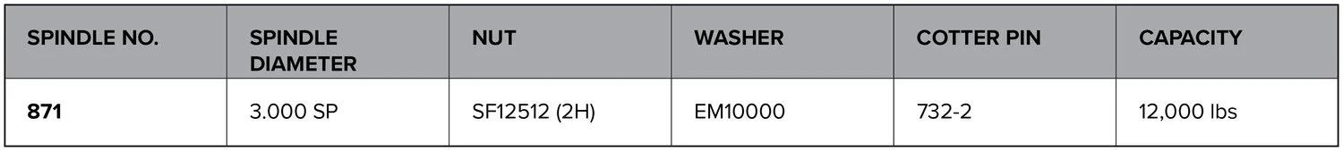 The 871 series of Eldale hubs and spindles boasts a 12,000lb capacity, a 10 bolt front pattern, and the ability to enhance the structural integrity of heavyweight implements such as grain carts.